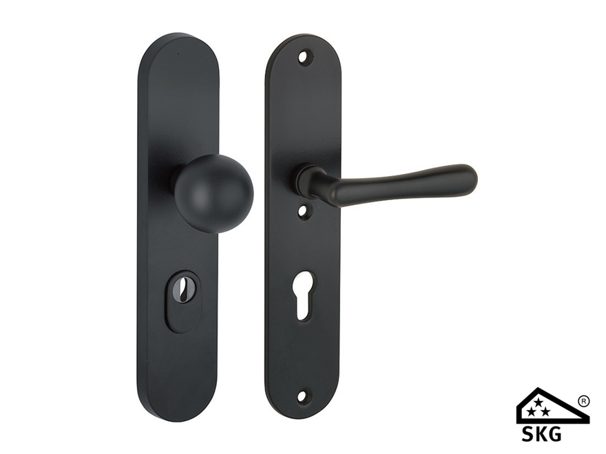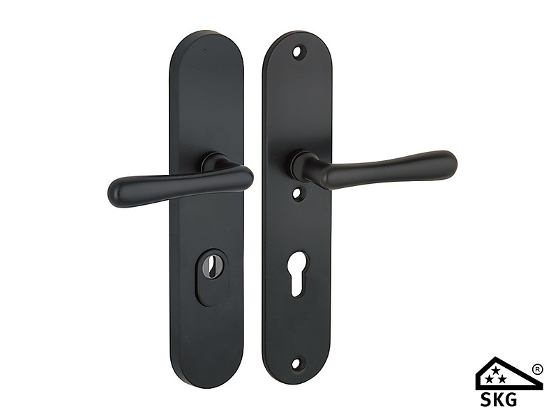 Mi Satori SKG*** kruk- of knop garnituur links/rechts met kerntrekbeveiliging PC72. Model Linea. In messing ongelakt