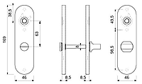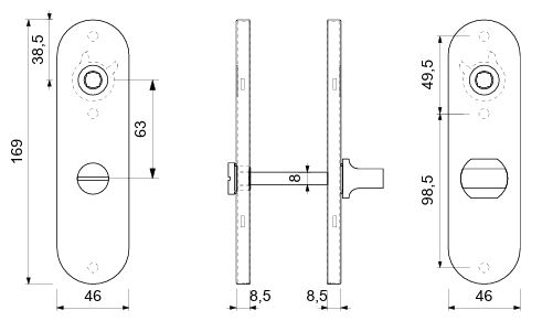 GPF1100.10 Kortschild afgerond WC63/8 grote knop RVS geborsteld. Dit kortschild van GPF bouwbeslag is uitgevoerd in geborsteld RVS en heeft afgeronde hoeken. Het enkelverende schild heeft slotsparing WC63, een toiletstift van 8 mm en een grote knop. Het schild heeft een afmeting van 169x46x8,5 mm