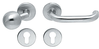 Knop-kruk op rozet Chase KL4 DIN RECHTS of LINKS RVS deurbeslag voor utiliteitsbouw. Ook brandwerend. Deurknop i.c.m. vastdraaibare deurkruk met veer op stalen onderconstructie. EN 1906 Klasse 4 & brandwerend EN 1634-2. Sleutel 47-1130B