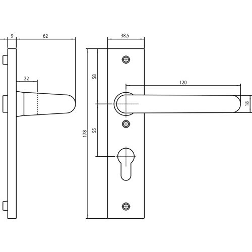 Nemef binnendeurbeslag 3252 Project binnendeurbeslag verkrijgbaar in diverse uitvoering al WC beslag of kruk-kruk beslag rechthoekig kortschild