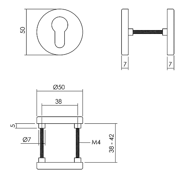 | Inhoud verpakking Rozet met profielcilindergat|Bevestigingsmateriaal voor montage | |