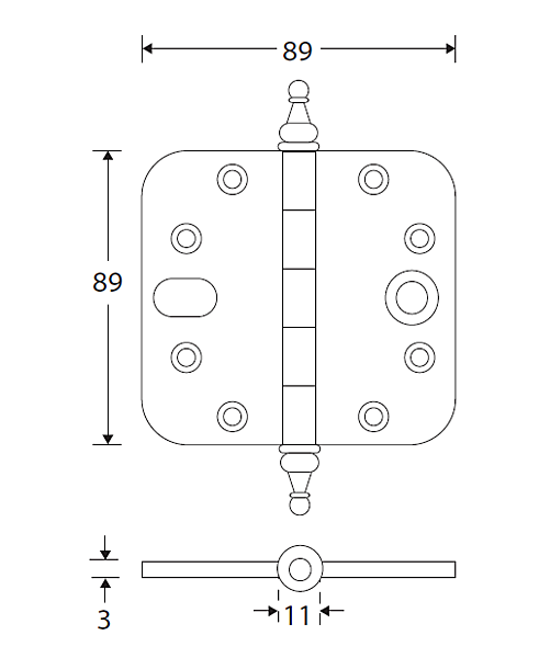 Kogellagerscharnier SKG3 89×89 ronde hoek vaas Mi Satori SKG*** scharnieren. Afwerking met vaas. Veiligheidsscharnier van Misatori