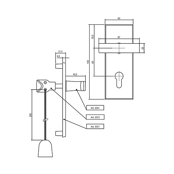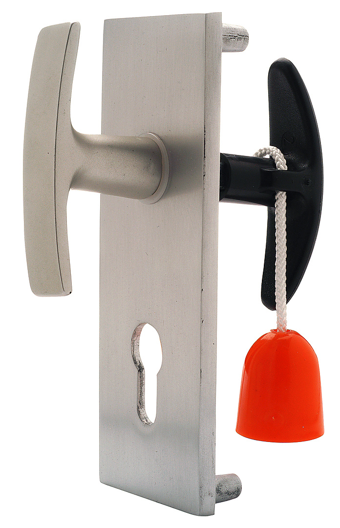 Langschildgarnituur voor garagedeuren. Aluminium beslag voor garagedeuren voorzien van cilindergat. verkrijgbaar per stuk en eenvoudig te bestellen.