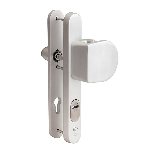 Maasland veiligheidsdeurbeslag met U-vorm deurkruk is gecertificeerd volgens SKG***, PKVW, EN 1906, en EN 16867 en voldoet dus aan alle eisen voor zwaar en intensief gebruik. Het beslag is uitgevoerd in aluminium en voorzien van een roestvaststalen kerntrekbeveiliging. Deze beschermt de cilinder tegen uitboren of uittrekken. Omdat de kruk en/of greep zijn om te leggen op locatie zijn de sets geschikt voor links- en rechtsdraaiende deuren. Door de geveerde krukken wordt doorhangen tegengegaan, is de bediening soepel en is er minder slijtage. Bij het gebruik i.c.m. solenoidsloten worden deze goed ontkoppeld. Snelle en eenvoudige montage doordat het beslag vastdraaibaar is op schild en daardoor geen last van lostrillende krukken. Er is keuze uit PC 72 mm of PC 92 mm. Standaard geschikt voor deurdikte 35-44 mm maar met optionele verlengsets geschikt voor deurdiktes tot 65 mm. Alle sets worden geleverd inclusief bevestigingsmaterialen en krukstift. Toepasbaar voor renovatie en nieuwbouw.