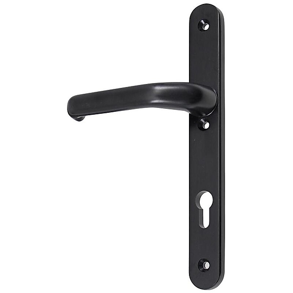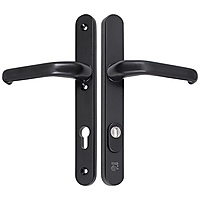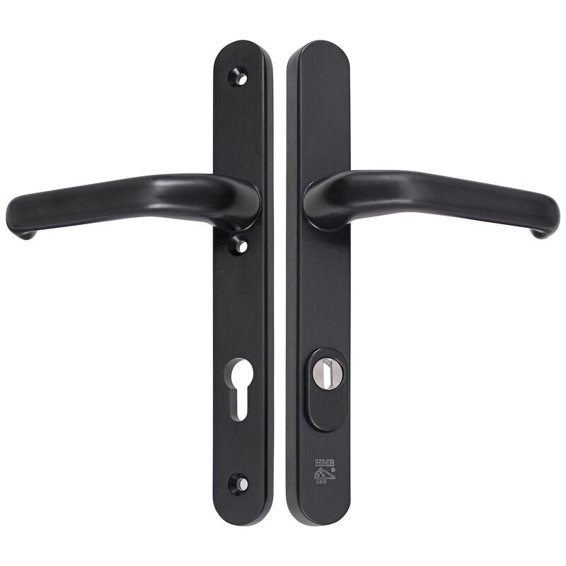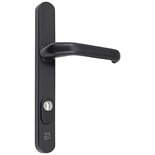 HMB M-line Noir zwart veiligheidbeslag afgerond smal PC92 Kruk/Kruk met Kerntrekbeveiliging. Voorzien van RVS kerntrekbeveiliging met vastdraaibaar beslag met geveerde kruk ideaal voor renovatie. Geen verschil in draairichtingen en van hoogwaardige kwaliteit met extra lange schilden.