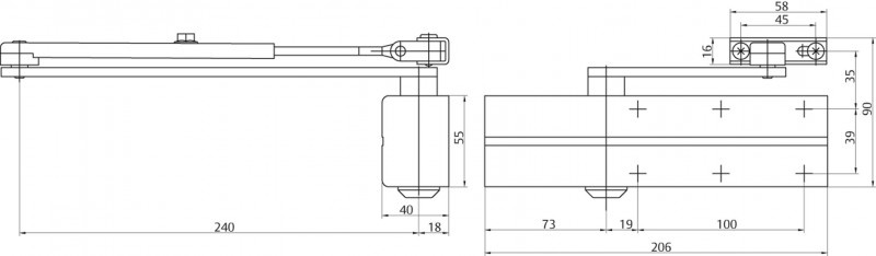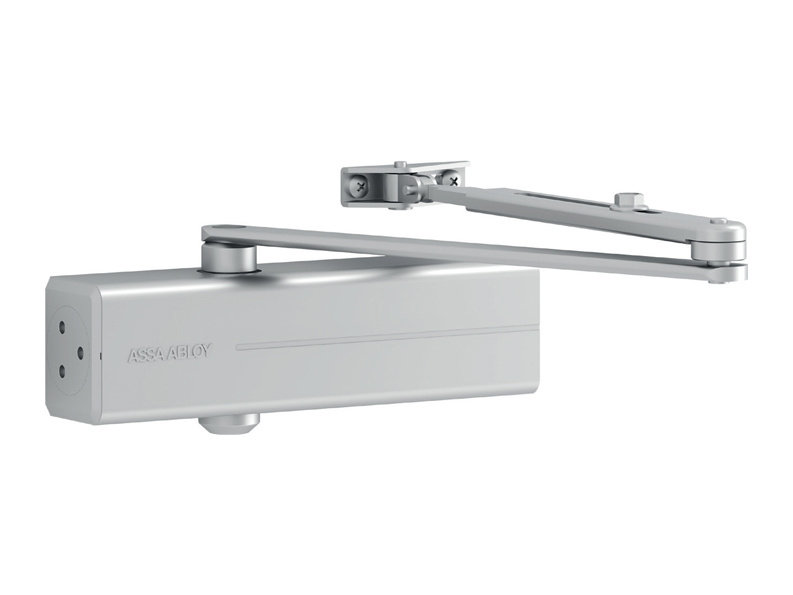 DC140 ASSA ABLOY tandheugel deurdranger od deurpomper EN 2/3/4, met instelbare openingsdemping, sluitsnelheid en eindslag, kleur zilver EV1.