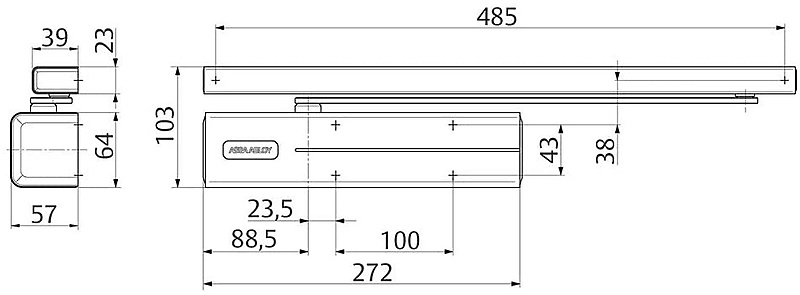 DC700 lichtlopende deurdranger Zwart van ASSA ABLOY. Deurdranger met CAM-technologie en in hoogte verstelbare glijarm G195 of standaard glijarm G193. Gecertificeerd volgens EN 1154, kracht EN 3-6. Geschikt voor rook- en brandwerende deuren. Voldoet aan de eisen voor onstakelvrije gebouwen (DDA/CEN TR 15894). Voor enkele deuren met een breedte tot 1400 mm. Kan op vier verschillende manieren worden gemonteerd: op scharnierzijde, op tegenscharnierzijde, op deurblad en op omlijsting.