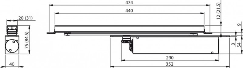 DC860 ASSA ABLOY Cam-Motion inbouw-deurdranger met instelbare openingsdemping, sluitsnelheid en eindslag, exclusief arm, kleur zilver EV1.