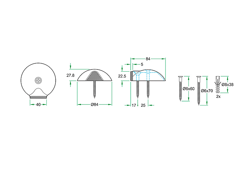 Te verkrijgen in verschillende uitvoeringen met dezelfde maten. Monteerbaar op de vloer d.m.v. twee schroeven en pluggen, zodat deze niet kan verschuiven.