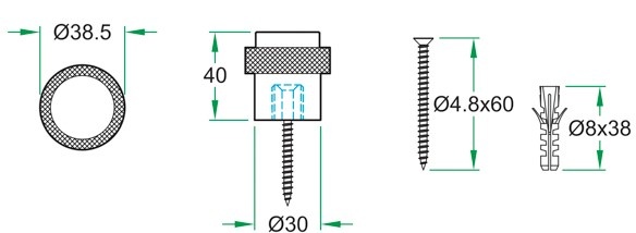 Te verkrijgen in verschillende uitvoeringen met dezelfde maten. Monteerbaar op de vloer d.m.v. een schroef en plug, zodat deze niet kan verschuiven.