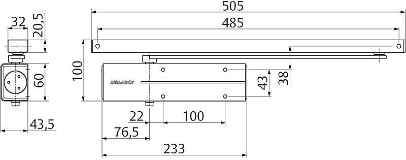 Zwarte deurdranger DC135 van ASSA ABLOY inclusief glijarm. Gecertificeerd volgens EN 1154, kracht EN 3. Geschikt voor rook- en brandwerende deuren. Deurpomp geschikt voor links- en rechtsdraaiende deuren. Sluitsnelheid, eindslag en openingsdemping instelbaar d.m.v. regelventielen achter de decoratieve clipsplaat. Thermodynamische ventielen voor een consistente werking.Deursluiter met tandradheugel en glijarm