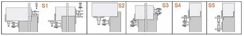 SET 2 (S2): Toepassing alleen voor montage aan de binnenzijde. Voorwaarde hierbij is dat er voldoende plaats aanwezig moet zijn voor de bevestigingsconsole (min. 45mm).