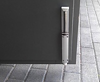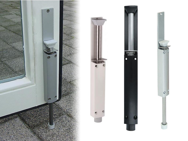 De deurvastzetters zijn roestvast (alle metalen onderdelen zijn van aluminium of roestvrij staal) en dus ideaal voor gebruik buitenshuis of in een vochtige omgeving. Goede grip ook op gepolijste of ongelijkmatige vloeren, omdat een ingebouwde veer de voet stevig tegen de vloer drukt