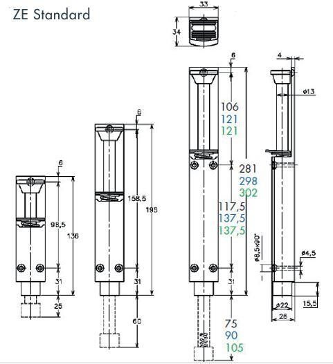 Deurvastzetter ZE van Dictator vast te zetten van deuren in elke positie. Zeer sterk en solide ontwerp comfortabele bediening met de voet. Zeer goed bestendig, ook tegen vandalisme, want de behuizing is uit n stuk gemaakt. Standard uitvoering. Deurvastzetter ZE in diverse slaglengtes en kleuren