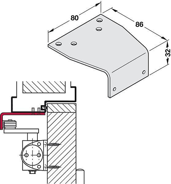 Dorma bevestigingshoek t.b.v. TS73 TS83
