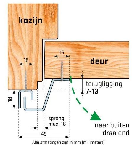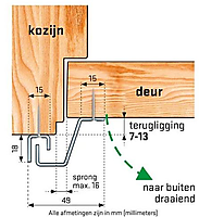 Meet eenvoudig de terugligging van uw deur: het aantal millimeters dat het kozijn voor de deur uitsteekt.
