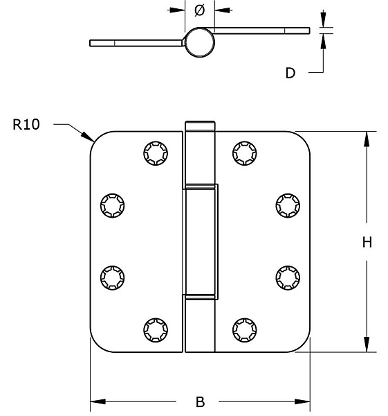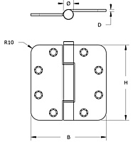 Glijlagerscharnier ronde hoeken 3 mm 89x89 mm zwart. Een interieur met industrieel uiterlijk en zware deuren en ramen? Dan is dit CE gecertificeerde zwarte glijlagerscharnier een slimme keuze. DX Glijlagerscharnieren zijn slijtvast, geruisloos, onderhoudsvrij en hebben een groot draagvermogen. Het glijlagerscharnier heeft zijn naam te danken aan de nylon glijlagers waar de scharnierbladen op draaien. Door de glijlagers kunnen moderne zware voor- en achterdeuren, nu afgehangen worden met minder scharnieren. Ter illustratie: voor een deur van 100 kg zijn slechts 2 glijlagerscharnieren nodig tegenover 4 kogellagerscharnieren.