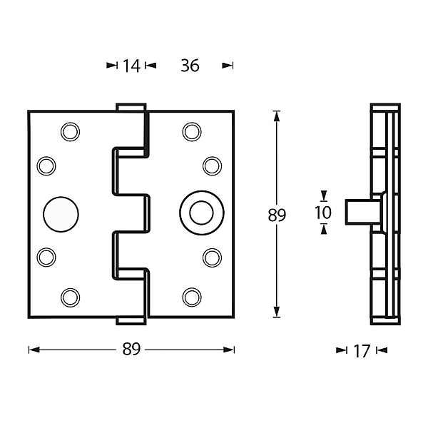Intersteel Kogellagerscharnier 89X89X3 SKG3 recht. Dit Kogellagerscharnier is vervaardigd uit roestvast staal en is naderhand geborsteld, waardoor het een matte uitstraling krijgt. Door het gebruik van massief rvs heeft dit product een lange levensduur. Dit scharnier met rechte hoeken is toe te passen op zowel naar rechts als links draaiende deuren, doordat u de stift en de einddop kunt demonteren. Het Kogellagerscharnier is 89 mm hoog, uitgeklapt 89 mm breed en heeft 3 mm dikke bledden. Dit scharnier is geschikt voor deuren met een gewicht tot 80 kilo. Daarnaast is dit product SKG*** gekeurd, wat betekent dat het om extra zwaar inbraakwerend hang- en sluitwerk gaat.