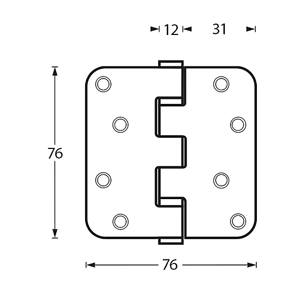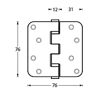 Kogellagerscharnier afgeronde hoeken 76x76x2.5 RVS