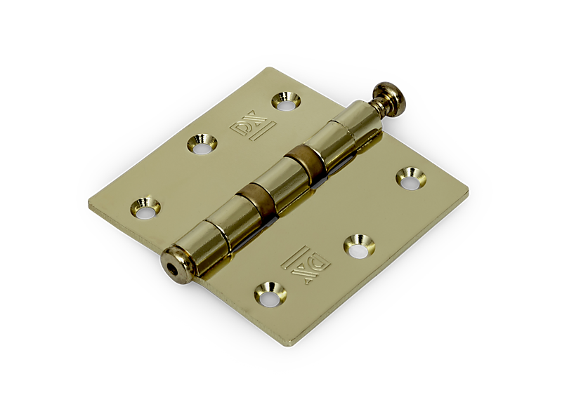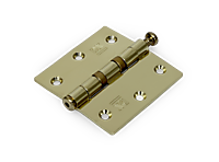 Kogellagerscharnier rechte hoeken 76x76 mm vermessingd. Dit CE gemarkeerde kogellagerscharnier is geschikt voor uw zwaardere design- of binnendeur. Vanuit esthetisch oogpunt past dit met messing afgewerkte stalen scharnier goed in zowel een retro als moderne woonomgeving. Door zijn rechte hoeken is het scharnier uitermate geschikt voor handmatige verwerking. Om het scharnier in te laten en te bevestigen kan gemakkelijk met hamer en beitel de uitsparing in deur of raam en kozijn gemaakt worden. Aan de onderkant is een scharnierknop bevestigd met daarin een gaatje. Allereerst verrijkt de scharnierknop het uiterlijk doordat boven- en onderkant nu identiek ogen. Daarnaast is er met het aangebrachte gaatje voor gezorgd dat demonteren, bijvoorbeeld wanneer u gaat schilderen, eenvoudig blijft. U slaat de bovenste pen door het gaatje gemakkelijk met een spijker omhoog. De scharnierknop en de pen zijn bovendien voorzien van een kartelrand, die voorkomt dat de scharnierknop of de pen na verloop van tijd uit het scharnier kruipt en er tevens voor zorgt dat het scharnier minder gauw scheef gaat hangen. Door de kogellagers loopt dit scharnier bijzonder soepel, wat de draagkracht en levensduur ten opzichte van een scharnier met losse pen ten goede komt. Om de hoge kwaliteit van dit scharnier langere tijd te waarborgen wordt aangeraden de lagers jaarlijks te smeren met kogellagervet, zuurvrije vaseline of spray op siliconenbasis. Bent u op zoek naar een onderhoudsvrij scharnier met nog meer draagvermogen? Bekijk dan ook ons assortiment glijlagerscharnieren of kogelstiftpaumelles.