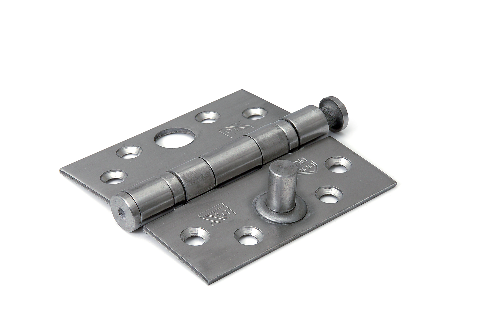 Kogellagerscharnier rechte hoeken SKG3 89x89 mm RVS geborsteld. Dit CE gecertificeerde DX veiligheidsheidsscharnier is door zijn geïntegreerde dievenklauw door het SKG gekeurd en bestempeld als inbraakwerend. Het scharnier is gemaakt van roestvrijstaal (RVS) en in combinatie met het SKG keurmerk daarom uiterst geschikt voor buitendeuren die intensief gebruikt worden. Dit product voldoet aan alle eisen om binnen het Politie Keurmerk Veilig Wonen (PKVW) toegepast te worden. Door zijn rechte hoeken is het scharnier uitermate geschikt voor handmatige verwerking. Om het scharnier in te laten en te bevestigen kan gemakkelijk met hamer en beitel de uitsparing in deur/raam en kozijn gemaakt worden. Roestvaststaal (RVS) heeft tevens een chique uitstraling. Aan de onderkant is een scharnierknop bevestigd wat het al chique RVS uiterlijk nog verder verrijkt doordat boven en onderkant nu identiek ogen. In deze scharnierknop is een klein gaatje aangebracht, wat er voor zorgt dat demonteren, bijvoorbeeld wanneer u gaat schilderen, eenvoudig blijft. U slaat de bovenste pen door het gaatje gemakkelijk met een spijker omhoog. De scharnierknop en de pen zijn bovendien voorzien van een kartelrand, die voorkomt dat de scharnierknop of de pen na verloop van tijd uit het scharnier kruipt en er tevens voor zorgt dat het scharnier minder gauw scheef gaat hangen. Door de kogellagers loopt dit scharnier bijzonder soepel, wat de draagkracht en levensduur ten opzichte van een losse pen scharnier ten goede komt. Om de hoge kwaliteit van dit scharnier langere tijd te waarborgen wordt aangeraden de lagers jaarlijks te smeren met kogellagervet, zuurvrije vaseline of spray op siliconenbasis. Doet u dit? Dan blijft uw klus jarenlang mooi! Bent u op zoek naar een onderhoudsvrij scharnier met nog meer draagvermogen? Bekijk dan ook ons assortiment glijlagerscharnieren of kogelstiftpaumelles.