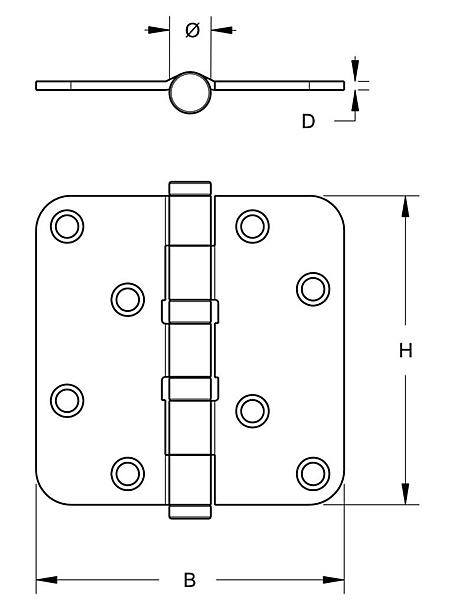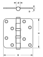 Kogellagerscharnier ronde hoeken 89x89 mm RVS geborsteld. Dit CE gemarkeerde DX kogellagerscharnier, gemaakt van roestvrijstaal (RVS), is zeer geschikt om buiten toe te passen. Door zijn kogellagers is dit scharnier sterk genoeg voor een buitendeur, schuurdeur of achterdeur die intensief gebruikt wordt. Zijn ronde hoeken maken dit scharnier uitermate geschikt om machinaal te verwerken.