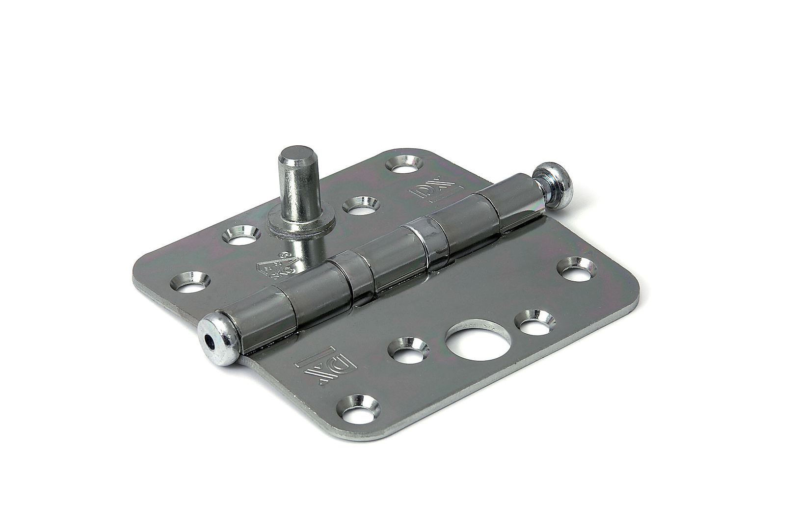 Kogellagerscharnier ronde hoeken SKG3 89x89 mm verzinkt. Dit CE gecertificeerde DX veiligheidsheidsscharnier is door zijn geïntegreerde dievenklauw door het SKG gekeurd en bestempeld als inbraakwerend en daarmee geschikt voor buitendeuren en ramen die intensief gebruikt worden. Dit product voldoet bovendien aan alle eisen om binnen het Politie Keurmerk Veilig Wonen (PKVW) toegepast te worden. Door zijn ronde hoeken is dit scharnier uitermate geschikt om machinaal te verwerken. Met een freesmachine kan de uitsparing in deur/raam en kozijn gemaakt worden. Aan de onderkant is een scharnierknop bevestigd met daarin een gaatje. Allereerst verrijkt de scharnierknop het uiterlijk doordat boven- en onderkant nu identiek ogen. Daarnaast is er met het aangebrachte gaatje voor gezorgd dat demonteren, bijvoorbeeld wanneer u gaat schilderen, eenvoudig blijft. U slaat de bovenste pen door het gaatje gemakkelijk met een spijker omhoog. De scharnierknop en de pen zijn bovendien voorzien van een kartelrand, die voorkomt dat de scharnierknop of de pen na verloop van tijd uit het scharnier kruipt en er tevens voor zorgt dat het scharnier minder gauw scheef gaat hangen. Door de kogellagers loopt dit scharnier bijzonder soepel, wat de draagkracht en levensduur ten opzichte van een losse pen scharnier ten goede komt. Om de hoge kwaliteit van dit scharnier langere tijd te waarborgen wordt aangeraden de lagers jaarlijks te smeren met kogellagervet, zuurvrije vaseline of spray op siliconenbasis. Doet u dit? Dan blijft uw klus jarenlang mooi! Bent u op zoek naar een onderhoudsvrij scharnier met nog meer draagvermogen? Bekijk dan ook ons assortiment glijlagerscharnieren of kogelstiftpaumelles.