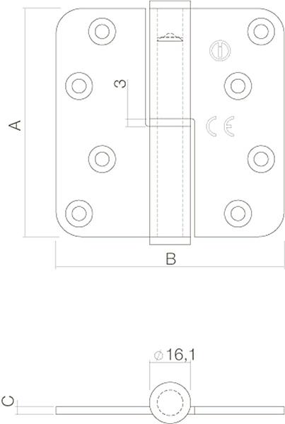 Intersteel Kogelstift paumelle Din rechts afgerond 89x89x3. Deze DIN rechts kogelstift paumelle is vervaardigd uit roestvast staal en is naderhand geborsteld, waardoor het een matte uitstraling krijgt. Door het gebruik van massief rvs heeft dit product een lange levensduur. Deze paumelle is 89 mm hoog, uitgeklapt 89 mm breed en heeft 3 mm dikke bledden. Deze paumelle is geschikt voor deuren met een gewicht tot 90 kilo. DIN links of rechts? Voordat u een keuze maakt uit een paumelle is het van belang om de draairichting van uw deur te weten. U kunt dit eenvoudig bepalen door de volgende situatie voor te stellen. Als u voor uw deur staat, uw deur vervolgens naar u toe trekt en paumelles aan de rechterkant zitten, dan heeft u DIN rechts paumelles nodig. Zitten de paumelles aan de linkerkant, dan heeft u een DIN links paumelle nodig. Een andere situatie is als de deur naar buiten draait. U staat voor uw deur, uw duwt de deur van u af en de scharnieren zitten rechts. Dan heeft een DIN links paumelle nodig. Zitten de paumelles links, dan heeft u een DIN rechts paumelle nodig.