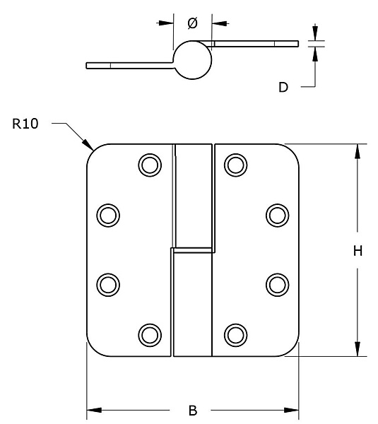 Kogelstiftpaumelle ronde hoeken 89x89 mm SKG3