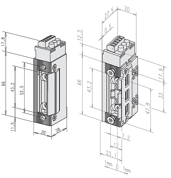 De voordelen ·· Nieuwe aansluittechniek, omsteekbaar ·· Spanningsbereik van 12-24V bij AC- en DC-bedrijf ·· FaFix en Fix gecombineerd ·· Radiusschoot ·· Optioneel met vaste dagschoot ·· Alle modellen universeel (DR/DL/horizontaal) monteerbaar ·· Geïntegreerde overspanningsbeveiliging ·· Uitwisselbaar met de vorige modelserie 142 ·· Testcertificaat (MPA Dortmund) P-120389096