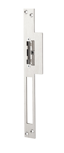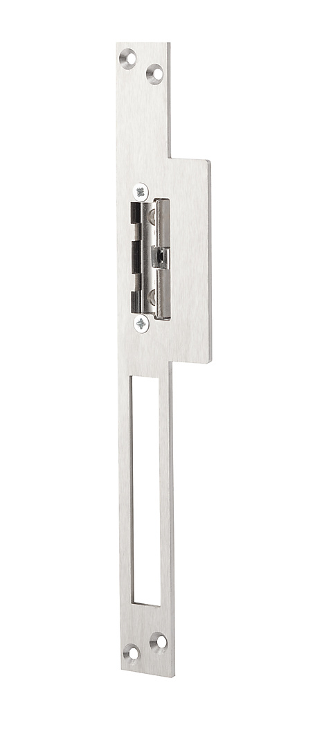 Elektrische deuropener met geïntegreerde schootgeleider die in het kozijn, tegenover de dagschoot van een mechanisch slot wordt ingebouwd, om deze te vergrendelen of te ontgrendelen. De schootgeleider duwt de dagschoot uit de schootvanger van de elektrische deuropener zodat, zonder lelijke uitsparingen in het kozijn, de deur kan worden ontgrendeld. De lange lipsluitplaat is geschikt voor houten kozijnen en heeft een uitsparing voor de nachtschoot zodat deze mechanisch kan worden vergrendeld.