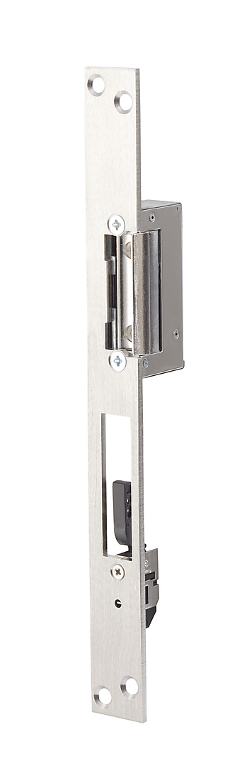 De deuropener wordt in het kozijn tegenover de dagschoot van een mechanisch slot ingebouwd om deze te vergrendelen of te ontgrendelen. De lange sluitplaat heeft een uitsparing voor de nachtschoot, zodat deze mechanisch kan worden vergrendeld.