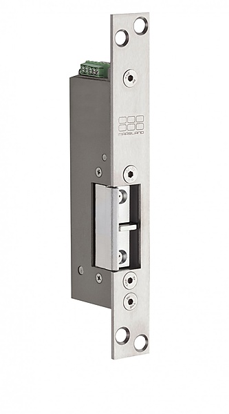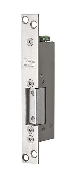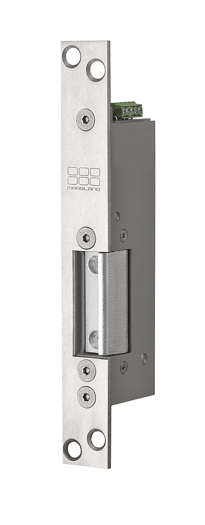 Robuuste elektrische deuropener die in het kozijn tegenover de dagschoot van een mechanisch slot wordt ingebouwd om deze te vergrendelen of te ontgrendelen. Door de speciale constructie ontgrendelen deze modellen onder zijdelingse druk waardoor ze geschikt zijn voor vluchtdeuren of andere situaties waarbij druk op de dagschoot komt.