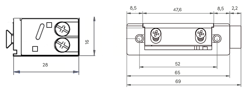 Deze Ruststroom deuropeners zijn de meest gebruikte modellen vanwege hun klein formaat (16mm breedte) en veelzijdige installatie toepassingen. De binnenzijde is zo ontwikkeld dat het in elke positie bediend kan worden. De ontsluiter kan gebruikt worden in zowel binnen- als buiten draaiende deuren. Meer bescherming om een langere levensduur van de elektronische ontsluiter te garanderen. De DC 100% spoelen zijn voorzien van een elektronische beveiliging om eventuele elektrische overspanning te voorkomen. Het interne mechanisme is nauwkeuriger en stelt ons product in staat om op elk type deur in te werken, of deze nu naar rechts of naar links opent. 10-30AC/DC traploze spanning. Door de M2 microprocessor kan de ontsluiter zijwaartse druk verdragen wat handig is in samenwerking met draaideurautomaten of deuren onder luchtdruksluiting.