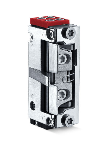 Geze elektrische mini arbeidsstroom deuropener 12-24V met schootgeleiding en dagschootsignalering Een universele radiale deuropener t.b.v. ontgrendeling van de dagschoot. De OC160G-D is onderdeel van de mini serie, deze serie kenmerkt zich door de beperkte inbouwdiepte van 25mm. Zonder spanning vergrendeld (arbeidsstroom). Voorzien van dagschootgeleiding & signalering.