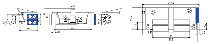 | 64,55 x 25,5 x15.8 mm (H x D x B). | |