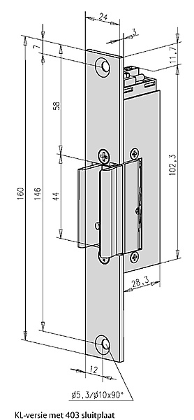 LIPS inbouw glasdeuropeners 914 / 934 KL De glazen deur wordt op de kopzijde opgevangen door de deuropener. Het is belangrijk dat de sluitnaad tussen de deuropener en de glasdeur niet meer dan 3 mm bedraagt. De glasdeuropener is geschikt voor standaard glasdiktes van 10 of 12 mm. Dit type glasdeuropener geeft niet vrij onder zijdelingse druk. Men dient bij bestelling de schootdikte op te geven.