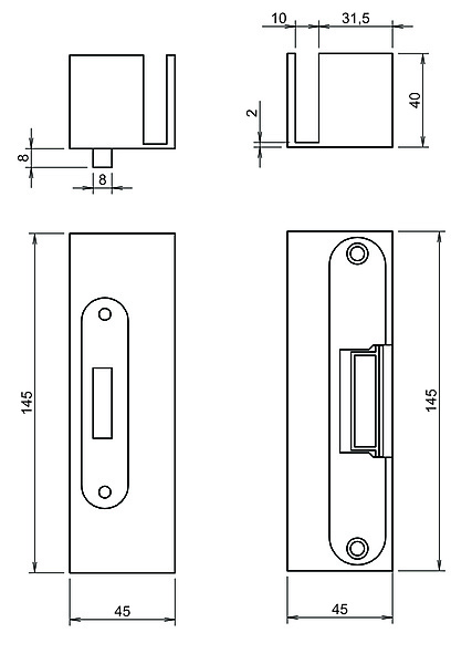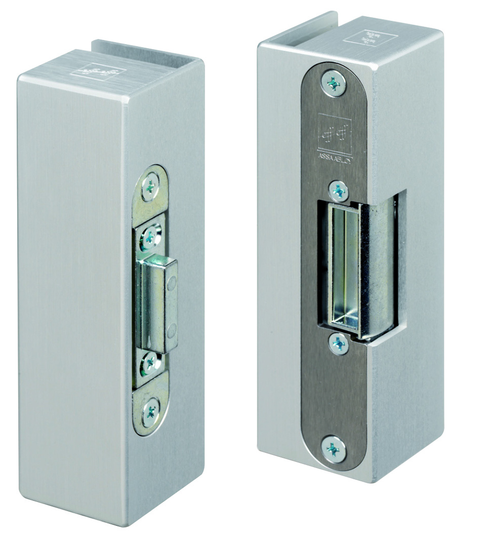effeff opbouw glasdeuropeners Dit model is geschikt voor massief glazen deuren. Zowel de vaste schoot als de deuropener zijn ingebouwd in een aluminium opbouw behuizing. Er is sprake van eenvoudige montage door de behuizing op het glas te lijmen. De sluitnaad tussen de deuropener en glasdeur moet voor een juiste werking minimaal 6 mm bedragen. Bij bestelling dient de glasdikte van de deur te worden opgeven.