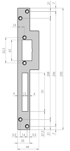 HZLAP Voorplaat voor mini deuropener met schootgeleiding. Voorplaat voor gebruik in combinatie met elektrische deuropener met schootgeleiding