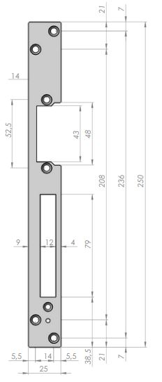 HZN Voorplaat voor mini deuropener zonder schootgeleiding met nachtschoot signalering. Voorplaten voor elektrische sluitplaten zonder schootgeleiding met nachtschootsignalering