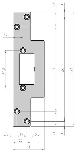 KLLAP korte sluitplaat met schootgeleiding voor voor gebruikt bij elektrische sluitplaten met schootgeleiding, 3mm, vlak, universeel L /R, kort, voor loopslot.
