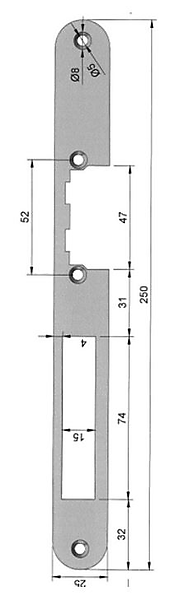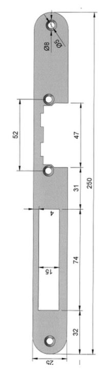 OC-HZ-A Afgeronde voorplaat voor mini deuropener zonder schootgeleiding. Voorplaat met afgeronde hoeken voor elektrische sluitplaten zonder schootgeleiding