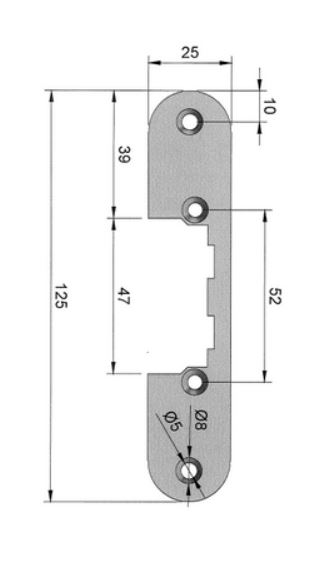 OC-KL-A Afgeronde korte voorplaat voor mini deuropener zonder schootgeleiding. Kort voorplaat met afgeronde hoeken voor gebruik bij elektrische sluitplaten zonder schootgeleiding