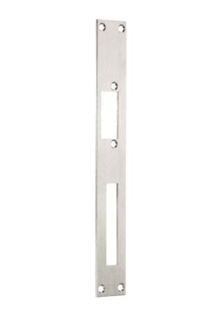 16HZF RVS lange voorplaat met nachtschootuitsparing voor gebruik bij elektrische sluitplaten 3mm dik vlak voor metalen kozijn.