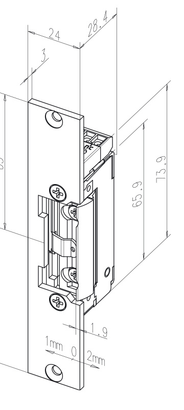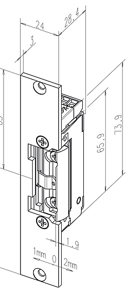 11805--09635A71 en B71 Elektrische inbouw deuropener type 118 met korte vlakke sluitplaat.