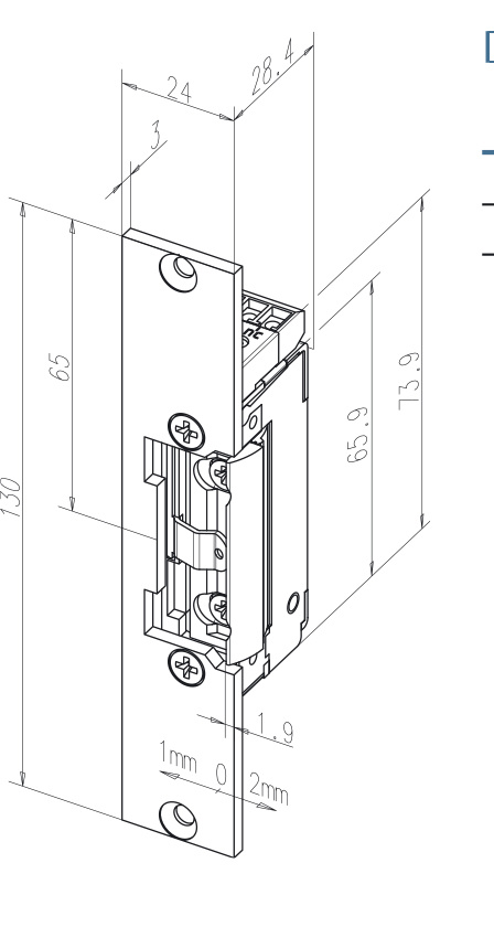 11805RR09635A71 en B71 Elektrische inbouw deuropener type 118 met korte vlakke sluitplaat.