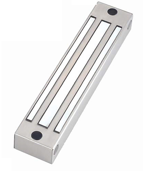 OC-300-WD Elektromagneet in RVS. Elektromagnetische deurvergrendeling werkend op ruststroom FS (spanningsloos ontgrendeld). De magneet is in een RVS behuizing gevat. Het magneet oppervlakte zelf is door een nylon coating beschermd. Geschikt voor buitendeuren.