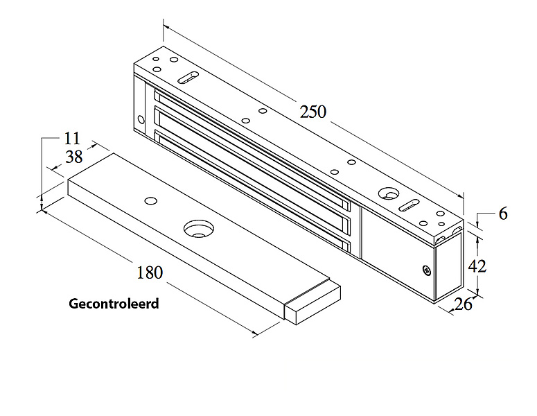| Gecontroleerd of ongecontroleerd afm magneet | 250x42x26mm |