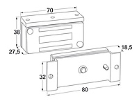 Kleine en lichte vergrendeling bestaande uit een magneet en een ankerplaat die op het kozijn en deur worden gemonteerd. Als de ankerplaat tegen de magneet aan wordt gedrukt en de spanning staat op de magneet dan vergrendelt deze. Door de spanning te onderbreken wordt de magneet ontgrendeld.