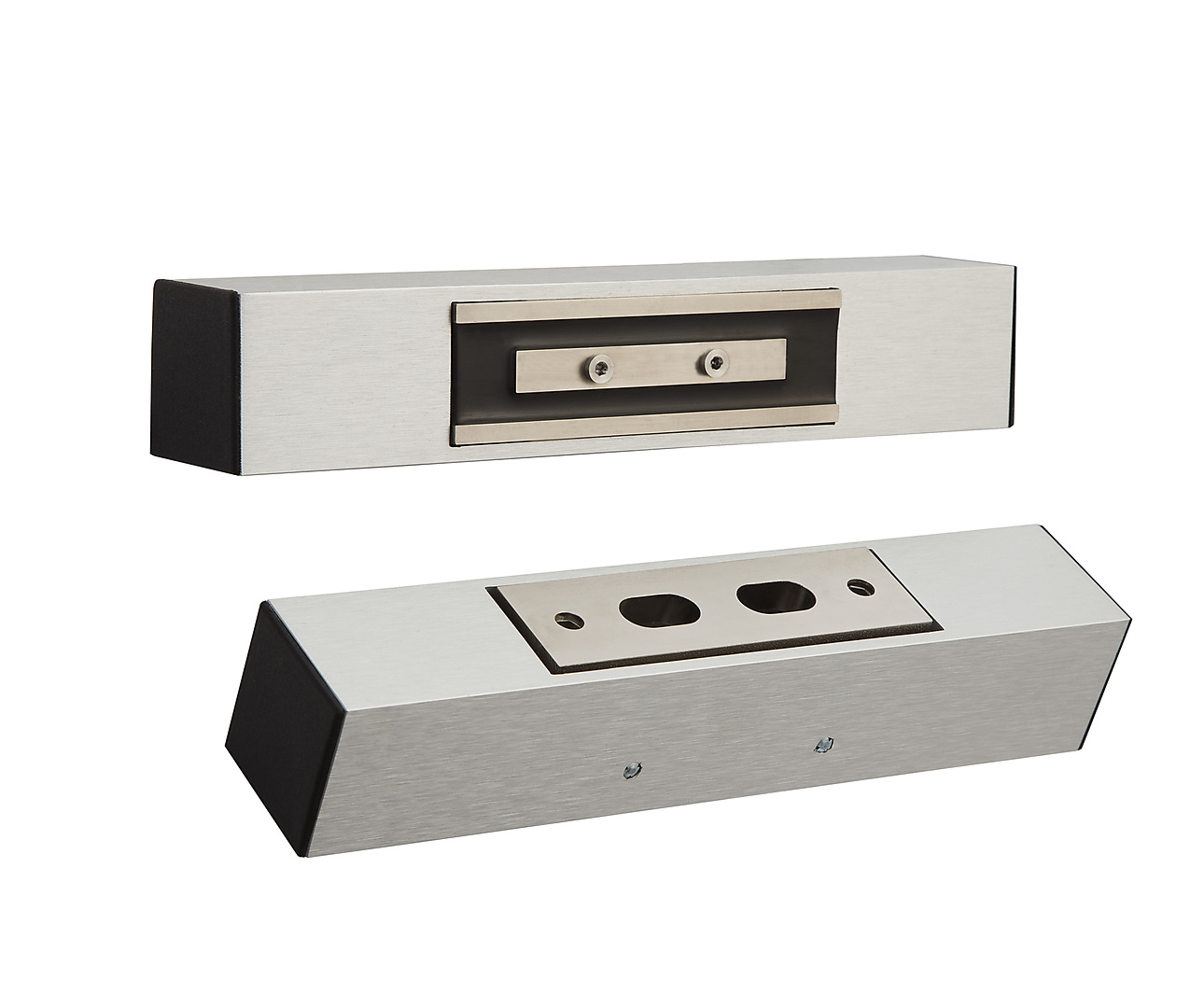 Sterke maar kleine opbouw vergrendeling bestaande uit een magneet en een ankerplaat die op het kozijn en deur worden gemonteerd. Door het shearlock montageprincipe komt bij het dichtgaan van de deur de ankerplaat voor de magneet en via een ingebouwd magneetcontact wordt de ankerplaat aangetrokken en vergrendeld via de nokken die in de uitsparingen van de ankerplaat zitten. Door de spanning te onderbreken wordt de magneet ontgrendeld. Standaard voorzien van spoelsignalering en geschikt voor 12V= en 24V=. Horizontaal of verticaal te monteren en geschikt voor deuren met aanslag en doorzwaaiende deuren.